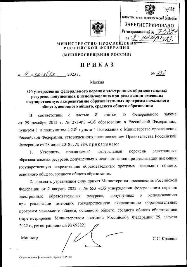 Приказ Министерства просвещения Российской Федерации от 04.10.2023 № 738